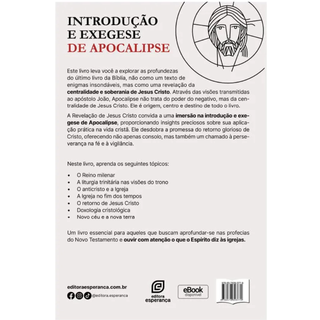 Este livro leva você a explorar as profundezas do último livro da Bíblia, não como um texto de enigmas insondáveis, mas como uma revelação da centralidade e soberania de Jesus Cristo. Através das visões transmitidas ao apóstolo João, Apocalipse não trata do poder do negativo, mas da centralidade de Jesus Cristo. Ele é origem, centro e destino de todo o livro.