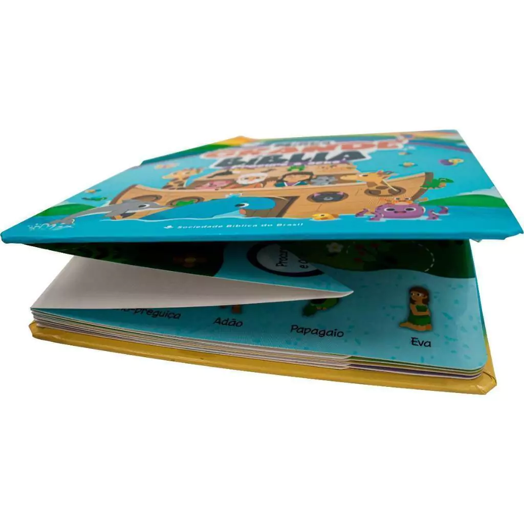 Esta Bíblia procure e ache vem com um toque surpreendente: ela fica GRANDE quando você a abre! Na verdade, ela fica quase quatro vezes maior quando aberta. Isso faz com que as cenas da Bíblia também fiquem grandes, e tudo é ampliado. A Bíblia é pequena e fácil de manusear e carregar, mas, quando aberta, fica tão GRANDE quanto qualquer livro grande. Ela não só fica maior quando é aberta, mas as histórias contidas nela também se concentram em todos os momentos incríveis da Bíblia, quando Deus demonstrou ser GRANDE, o maior. Deus fez o universo GRANDE, maior do que podemos imaginar, pediu a Noé que construísse a arca Grande, maior do que qualquer outro barco, e o poder de Jesus foi e continua sendo GRANDE, maior do que qualquer tempestade. Deus é GRANDE, maior do que tudo! Ao usar e ler esta Bíblia, as crianças aprenderão que Deus é GRANDE, maior do que qualquer problema que os israelitas enfrentaram ou qualquer problema com o qual elas e suas famílias estão enfrentando. Deus sempre sairá vitorioso, portanto, quando confiamos nele, nós também somos vitoriosos.